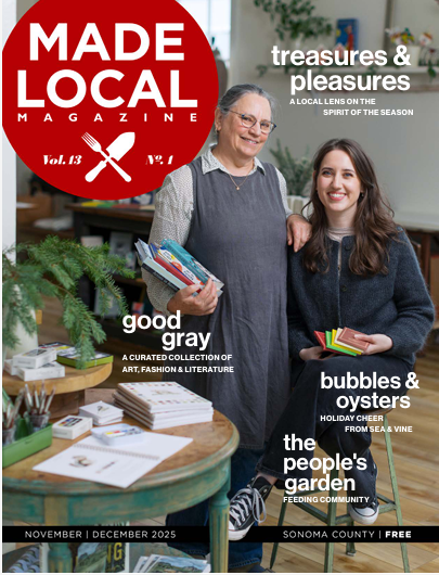 “Made Local Magazine (March/April 2024 issue) was my morning reading, perfect on a gray, drizzly morning. So much spring and smiles in all the articles. Is it my imagination that this edition has a new “feel” to it? The Future of Farming: excellent and educating. Fresh Finds makes me want to shop at Jupiter Foods. And the crowning gem with Nature’s Apothecary story: what a beautiful, innovative, and dedicated offering to the community. What an important role Made Local Magazine and GO LOCAL offers our community. Thank you for the hard work and caring you put into highlighting community gems of Sonoma County.”